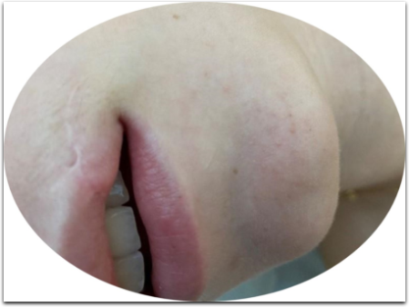 Je décide de tester cette cicatrice qui, dans sa partie la plus médiale, présente en partie intra-buccale une fixation tissulaire et neurale.